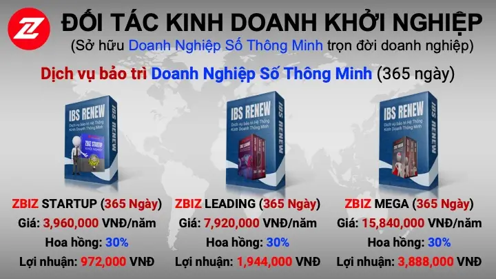 BAO GỒM TRONG DOANH NGHIỆP SỐ THÔNG MINH CỦA ĐỐI TÁC KINH DOANH KHỞI NGHIỆP ZBIZ STARTUP